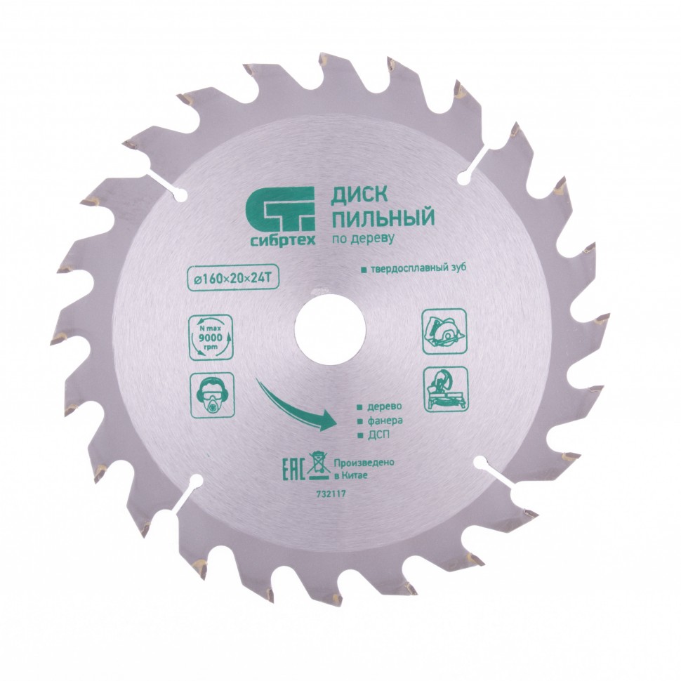 Диск пильный по дереву 160х20мм 24 зуба Сибртех