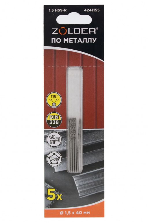 Сверло по металлу 1,5мм 5 шт Zolder