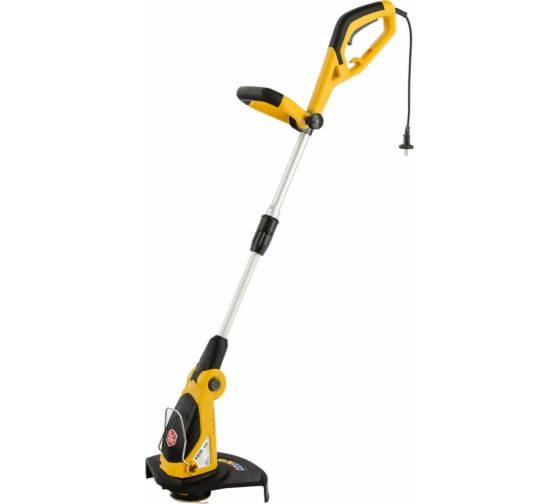 Электрический триммер DENZEL TE-650 96620 с ограничителем аккуратно выкашивает траву вокруг деревьев, кустов и вдоль кромок дорожек.