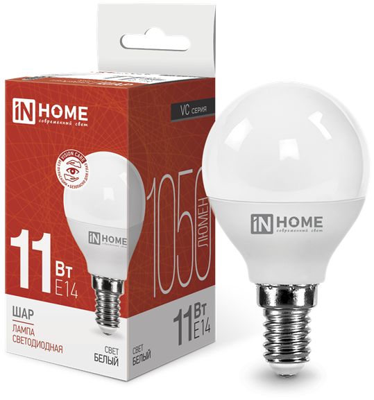 Лампа светодиодная Е14 11Вт 230Вт 1050lm 6500K шар In Home