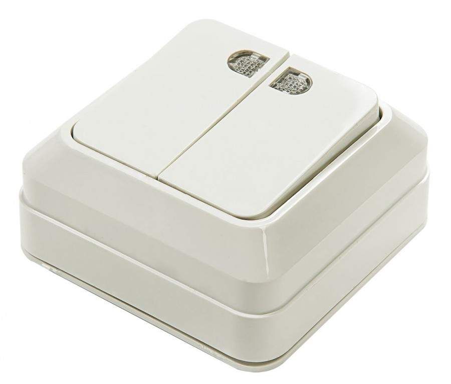 Выключатель In Home bolleto 7123 двухклавишный накладной с подсветкой белый