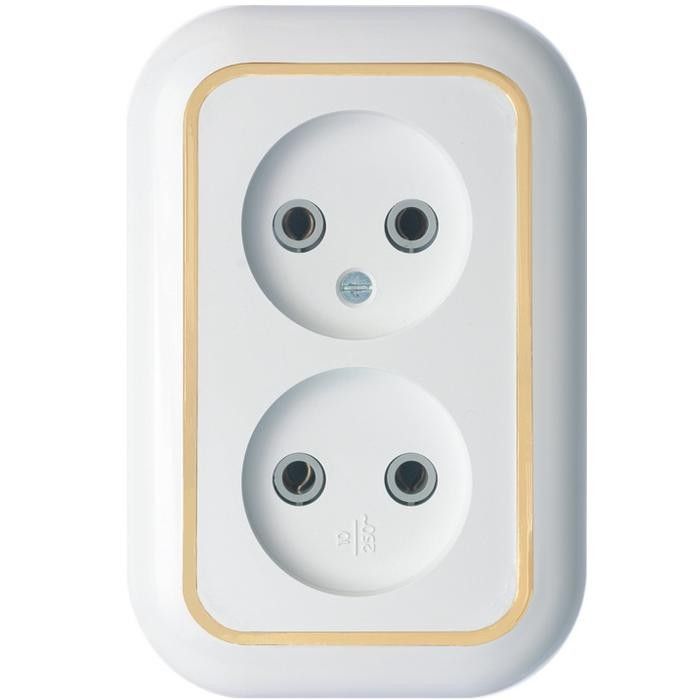 Розетка двухместная наружная белый/золото Кунцево Электро Валентина