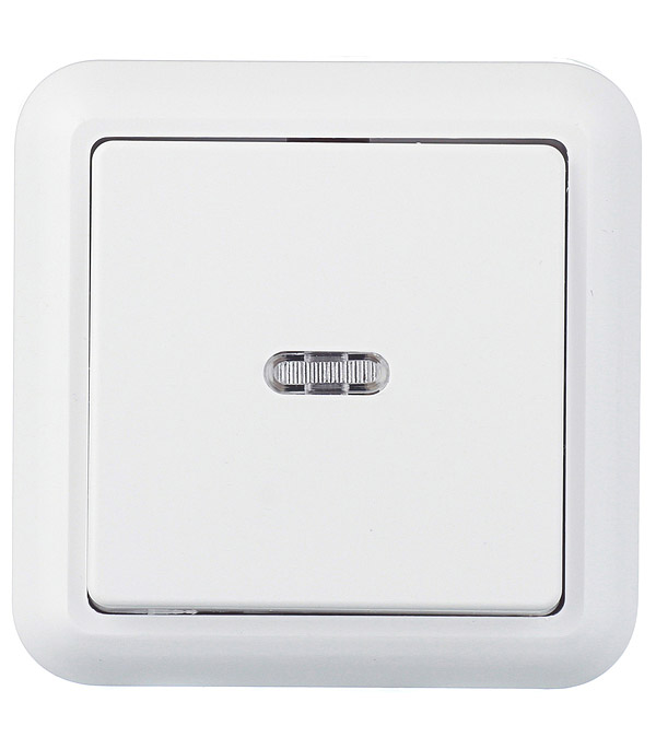 Предназначен для включения и выключения света в квартирах, офисах, загородных домах. Выключатель одноклавишный, с подсветкой, белый, открытой установки.