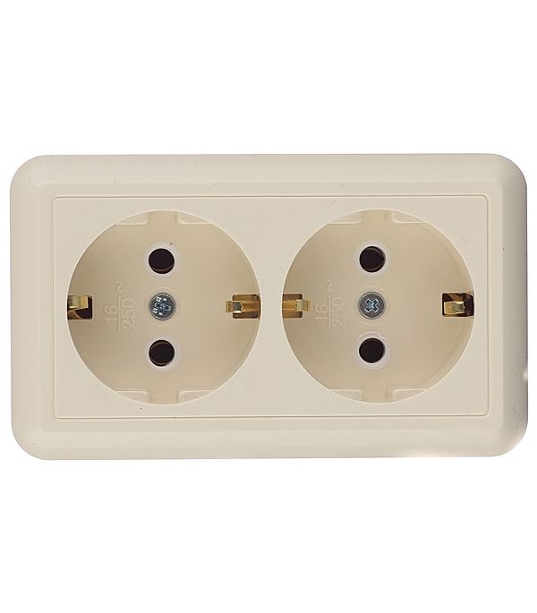 Розетка Селена с/у двухместная без з/к слоновая кость, 250В 16А