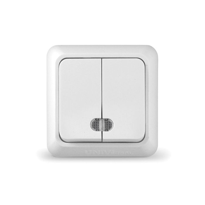 Выключатель двухклавишный наружный с подсветкой UNIVersal Олимп белый