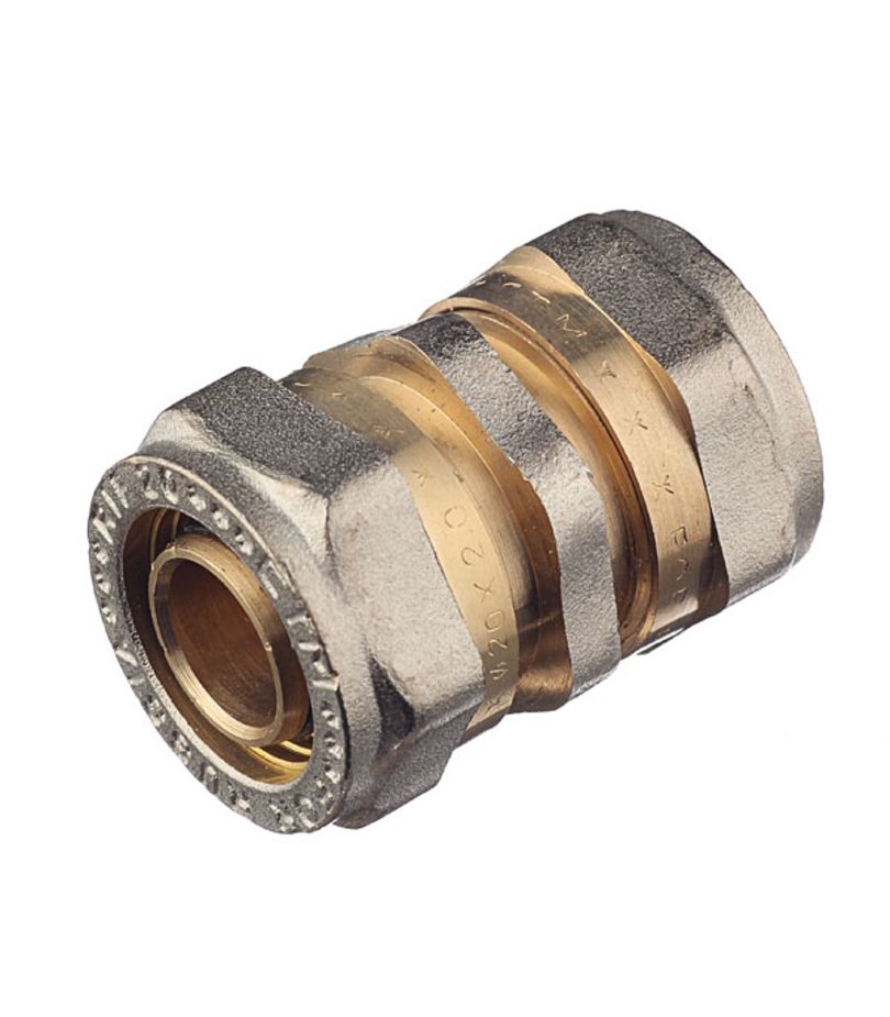 Предназначен для соединения металлопластиковых труб диаметром 20 мм по длине.