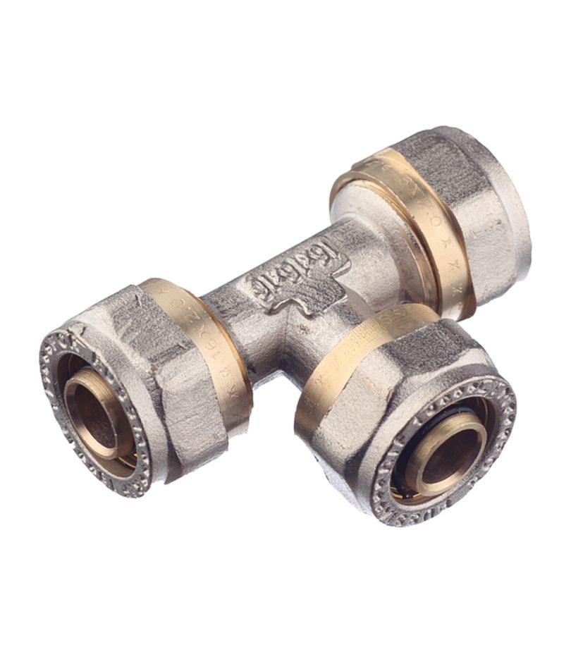 Предназначен для разветвления потока воды на два направления, а именно для соединения методом обжима трех металлопластиковых труб диаметром 16 мм.