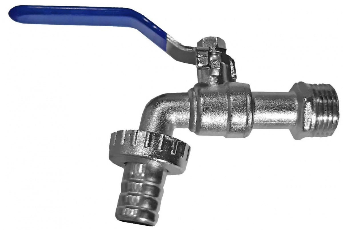 Предназначен для полного открытия или закрытия потока воды. Латунный никелированный кран, применяемый в качестве запорной арматуры на трубопроводах систем водоснабжения (в том числе питьевого) с рабочей температурой до 75 °С и давлением до 10 бар. Наличие съемного штуцера с накидной гайкой дает возможность производить его замену в зависимости от диаметра и материала применяемого шланга. Рассекатель обеспечивает формирование компактной струи на изливе.