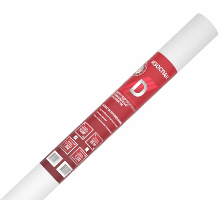 Изоспан D – двухслойный материал на основе высокопрочного полипропиленового тканого полотна, применяется в строительстве для защиты конструкции здания от проникновения из атмосферы влаги и конденсата. Благодаря повышенной прочности материал способен выдерживать значительные механические усилия в процессе монтажа и эксплуатации, может нести снеговую нагрузку. Изоспан D применяется как подкровельная гидро -пароизоляция в неутеплённых скатных кровлях для защиты деревянных элементов конструкции (чердачного помещения) от подкровельного конденсата, атмосферной влаги, ветра и снега, проникающих в местах неплотной укладки кровли. Благодаря УФ – стабильности и прочностным характеристикам может применяться в качестве временного покрытия для гидроизоляции стен и кровель, но не более 3-4 месяцев. При использовании как пароизоляции обязательно проклеивать соединительной лентой\клеем на перехлестах и напусках на стены и конструкции, т.к. непроклеенный стык не является достаточно герметичным.