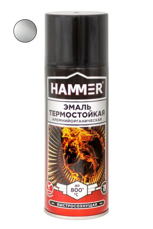 Эмаль термостойкая КО Hammer аэрозоль серебристый 520мл.