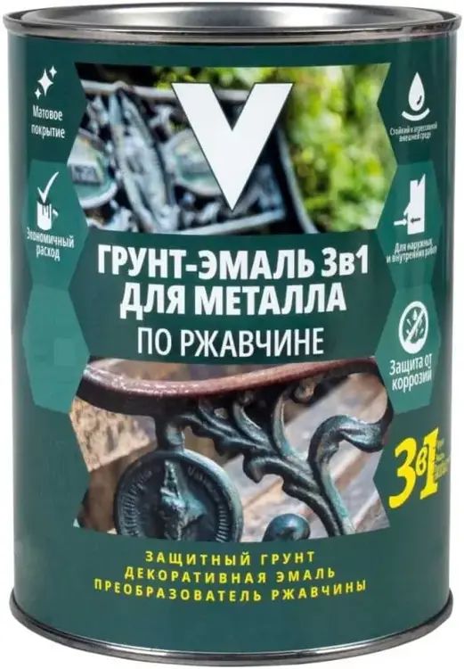 Грунт-эмаль по ржавчине 3 в 1 V зеленая 0,8кг