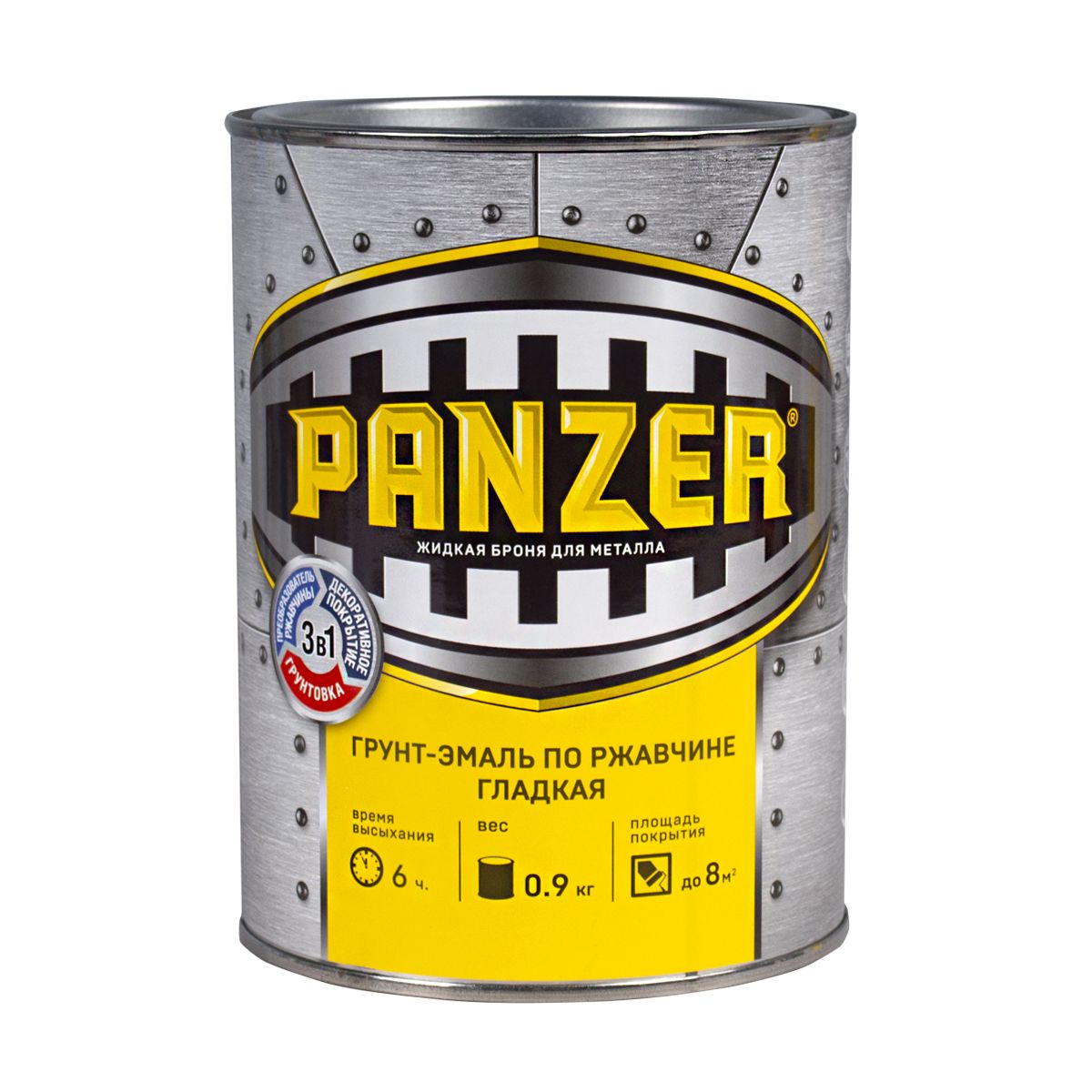 Грунт-эмаль по ржавчине гладкая Panzer черная 0,9кг