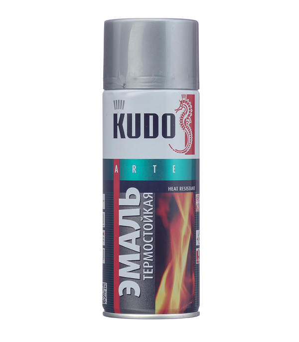 Эмаль термостойкая аэрозольная Kudo серебристая 520 мл