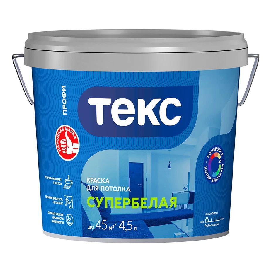 Краска для потолка Текс Профи супербелая 4,5 л