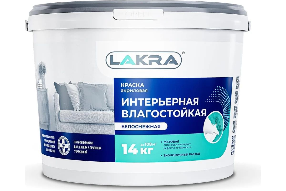 Краска водно-дисперсионная Лакра интерьерная влагостойкая 14кг
