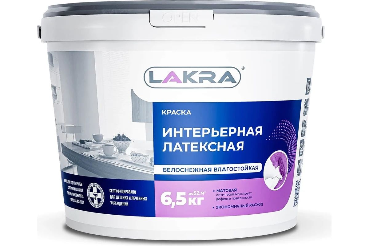 Краска водно-дисперсионная Лакра интерьерная влагостойкая латексная 6,5кг