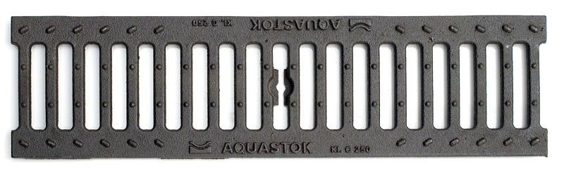 Решетка водоприемная щелевая чугунная – это классический вариант настила для водоотводных лотков (каналов, желобов) с шириной гидравлического сечения DN100 (100 мм). Применяется в зонах со средней интенсивностью движения, например: пешеходные зоны, АЗС или гаражи, стоянки автотранспорта, т.е. там, где нагрузка не превышает класс C250 (до 25 тонн).