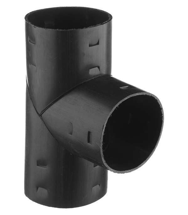 Тройник представляет собой пластиковый элемент в виде буквы "Т" со специальными фиксирующими выступами с внутренней стороны, обеспечивающими надежное соединение, либо может поставляться в гофрированном виде. Предназначен для соединения труб в Т-образный узел.