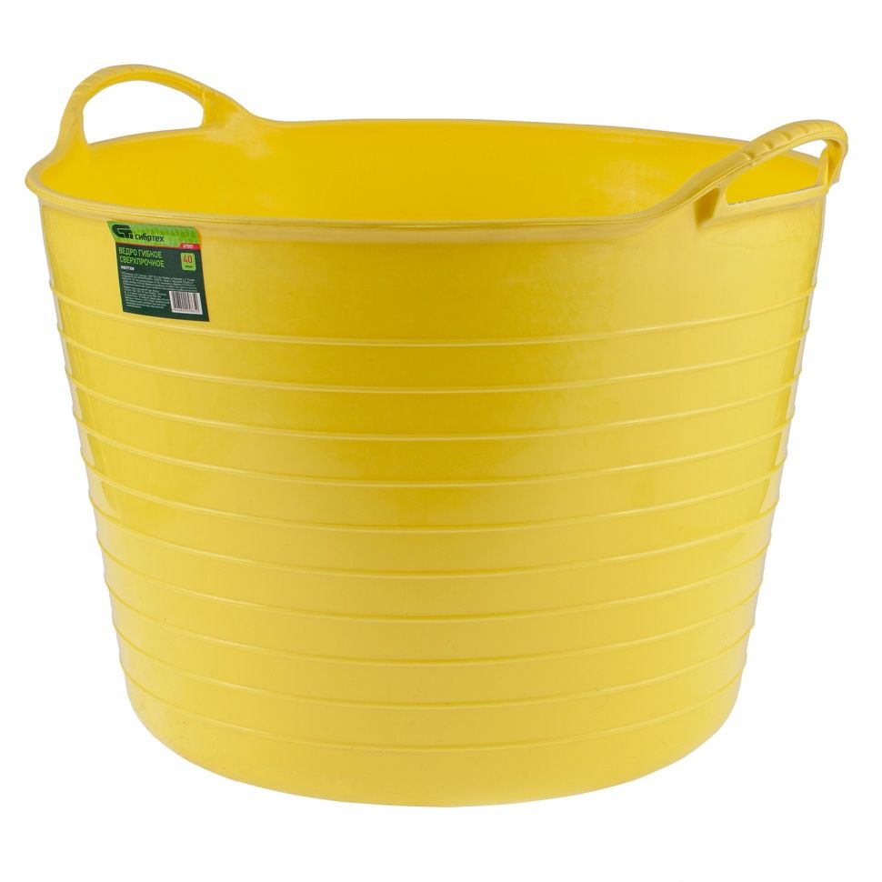 Сверхпрочное гибкое ведро Сибртех 67513 желтого цвета объемом 28 л пригодится на даче, стройке, рыбалке, в быту. В нем можно переносить воду для полива, сыпучие материалы для ремонта, замешивать строительные растворы, хранить корм и собирать урожай.