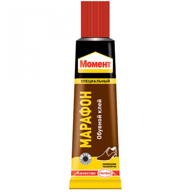 Является специальным обувным клеем, отлично подходящим для починки любых видов обуви из различных материалов в любых комбинациях: кожи, кожзаменителя, резины, ткани, войлока, пробки, термоэластопласта, пластика, дерева, металла, поливинилхлорида и других. Эластичен и устойчив к внешним воздействиям и агрессивной окружающей среде. Морозостойкий (от -40°С до +110°С) и водостойкий. Клеем для обуви «Момент» Марафон нельзя склеивать стиропор, полиэтилен, полипропилен, пластифицированный ПВХ.