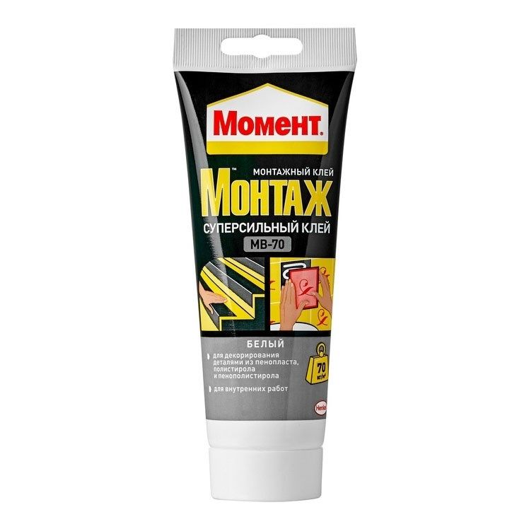Клей Момент Монтаж суперсильный применяется в качестве жидких гвоздей для прочного склеивания панелей из стиропора, пластика, потолочных плинтусов, декоративных фризов, пенопласта, дерева, ПВХ, керамики, металла и других материалов, кроме полиэтилена, тефлона и полипропилена. Может использоваться как для внутренних, так и для наружных работ.