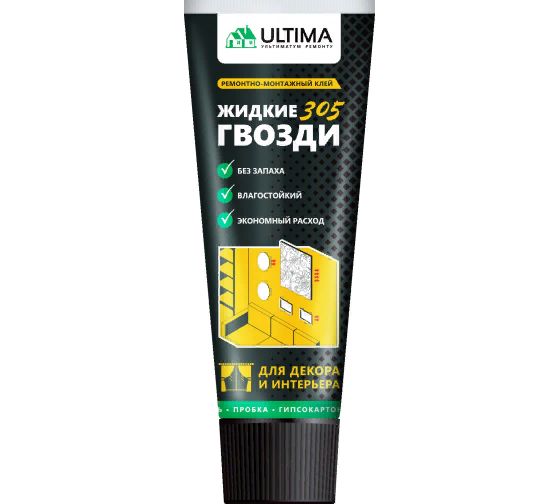 Клей для декора и интерьера обеспечивает быструю и надежную фиксацию деталей к различным основаниям (фанера, камень, пробка, гипсокартон, ДСП, керамика, дерево, бетон, штукатурка, кирпич, полистирол). Акриловый состав подходит для крепления молдингов, панелей, обрешетки и плитки. Коррекцию склеиваемых поверхностей производят в течении 10 минут после нанесения. Продукт при отверждении образует прочный соединительный шов, который можно окрашивать.