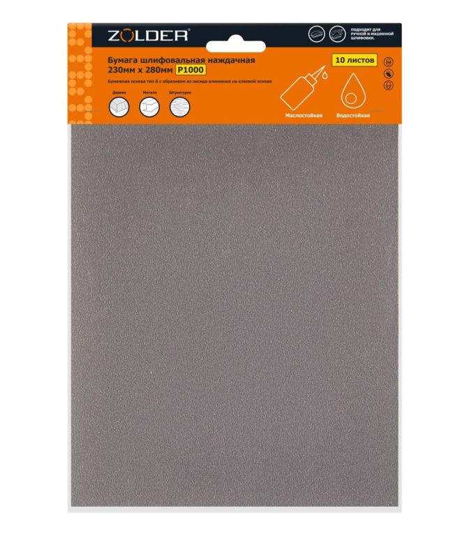 Бумага наждачная шлифовальная Р1000 230х280мм 10шт Zolder