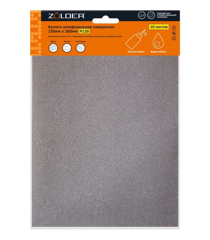 Бумага наждачная шлифовальная Р120 230х280мм 10шт Zolder