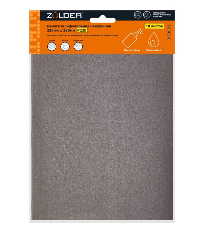 Бумага наждачная шлифовальная Р220 230х280мм 10шт Zolder