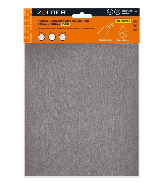 Бумага наждачная шлифовальная Р280 230х280мм 10шт Zolder