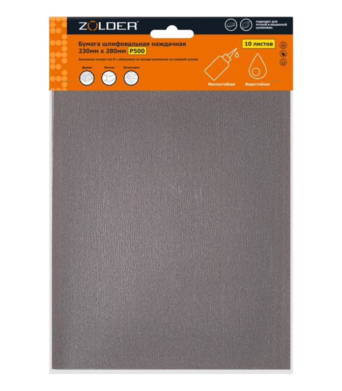 Бумага наждачная шлифовальная Р500 230х280мм 10шт Zolder