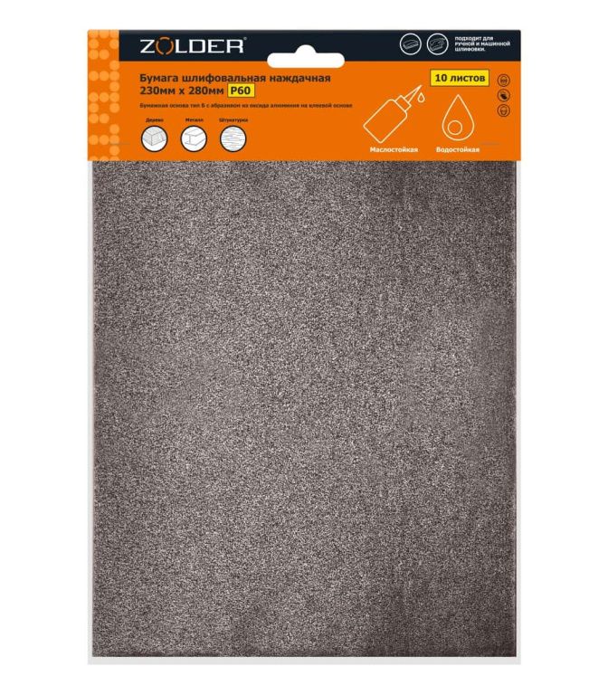 Бумага наждачная шлифовальная Р60 230х280мм 10шт Zolder