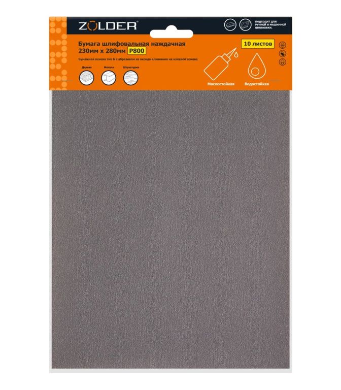 Бумага наждачная шлифовальная Р800 230х280мм 10шт Zolder