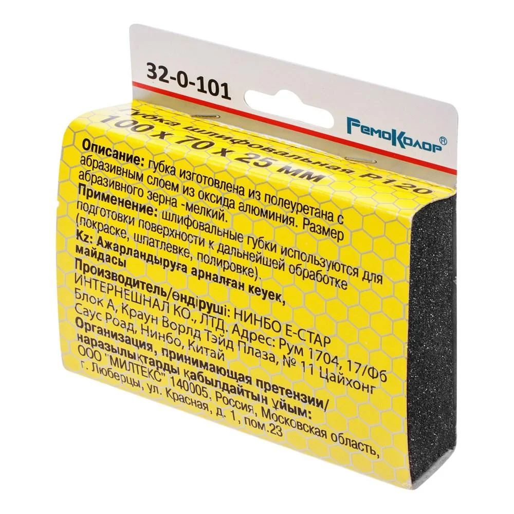 Губка шлифовальная Р120 100х70х25мм полиуретан