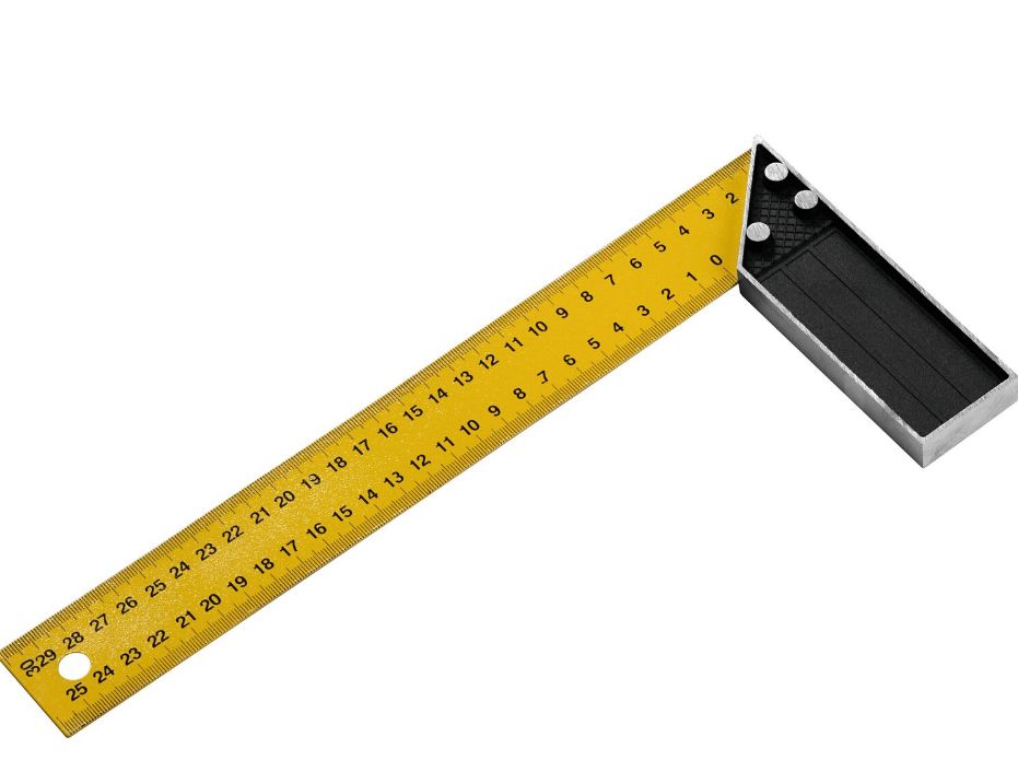 Металлический угольник надежный инструмент, который используется столярами и слесарями. С его помощью можно определять углы 45 и 90 градусов. Конструкция из металла имеет длительный срок службы. Нанесенная разметка упрощает определение размеров деталей.