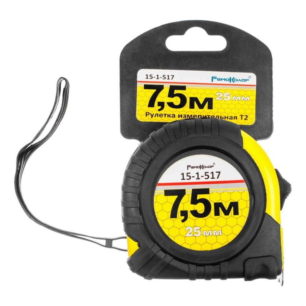 Рулетка 7,5 м ширина 25 мм Т2 обрезиненный корпус