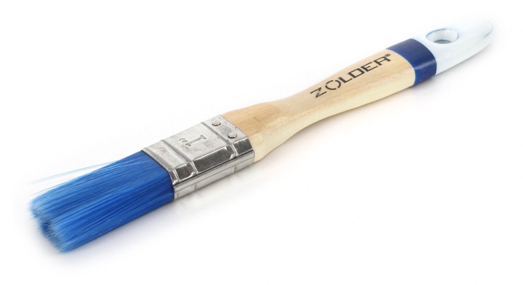 Кисть плоская 25х12 мм для водных красок и лаков искусственная щетина деревянная ручка Zolder Master