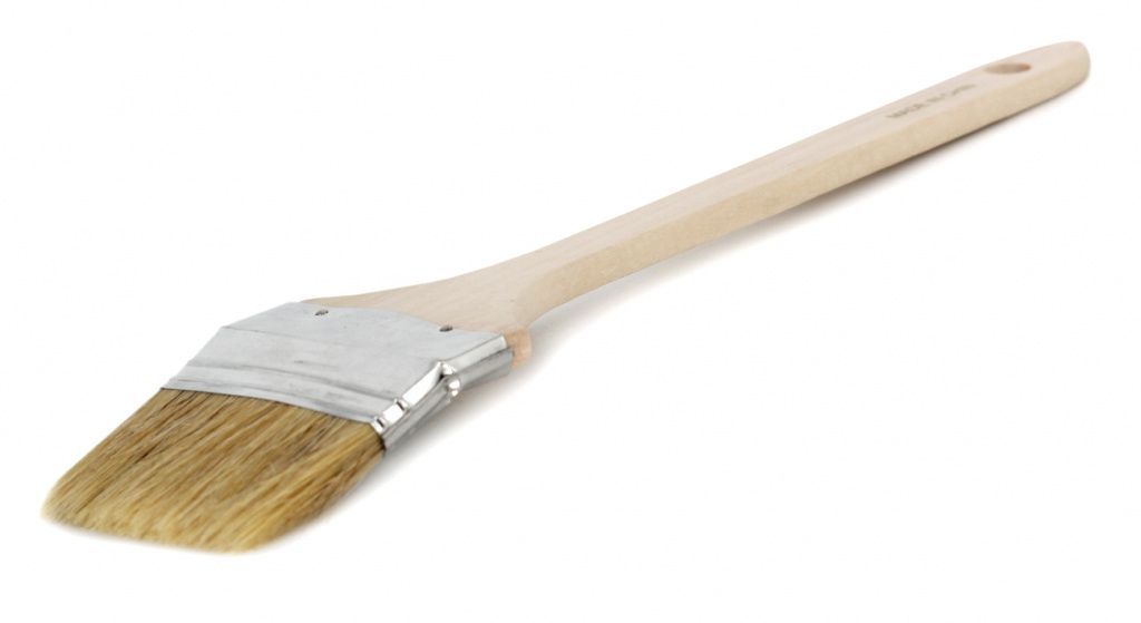 Кисть радиаторная применяется для покраски в труднодоступных местах любым лакокрасочным составом на больших и малых поверхностях. Она имеет длинную, изогнутую ручку, именно благодаря этому ею удобнее наносить краску между профилями, секциями радиаторов отопления, за трубами, в углах и на других участках, где неудобно работать стандартным малярным инструментом