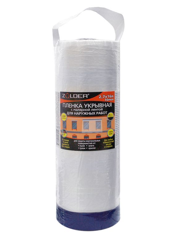 Пленка укрывная c малярной лентой для наружных работ 2,7мх16м Zolder