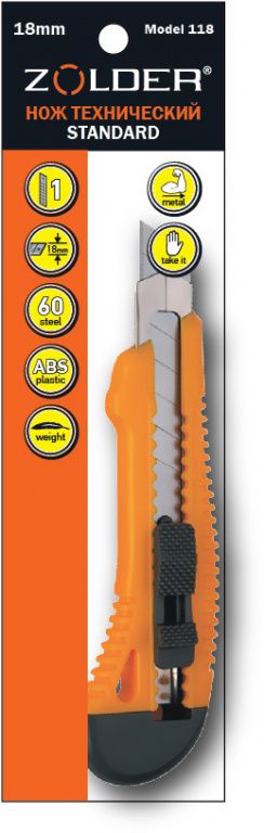 Нож Zolder Standard Model 118 технический с лезвием 18 мм 1 лезвие