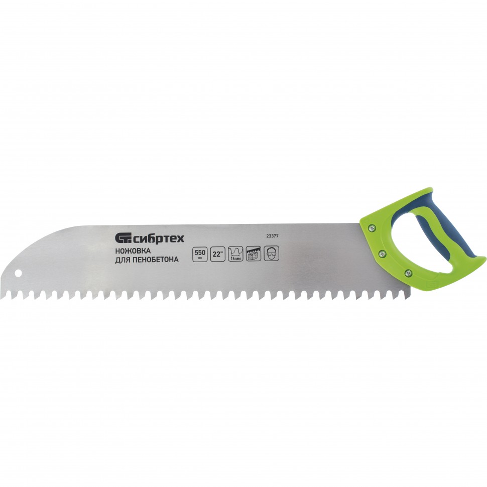 Ножовка предназначена для распила блоков из пенобетона.Общая длина ножовки 650 мм.Длина полотна 550 мм. Сталь 65Г .Твердость стали 45-52 HRC.Эргономичная двухкомпонентная рукоятка.Шаг зуба 16 мм.Защитное антикоррозийное покрытие.