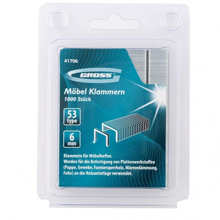 Скобы для степлера 6мм усиленные тип 53 1000шт Gross