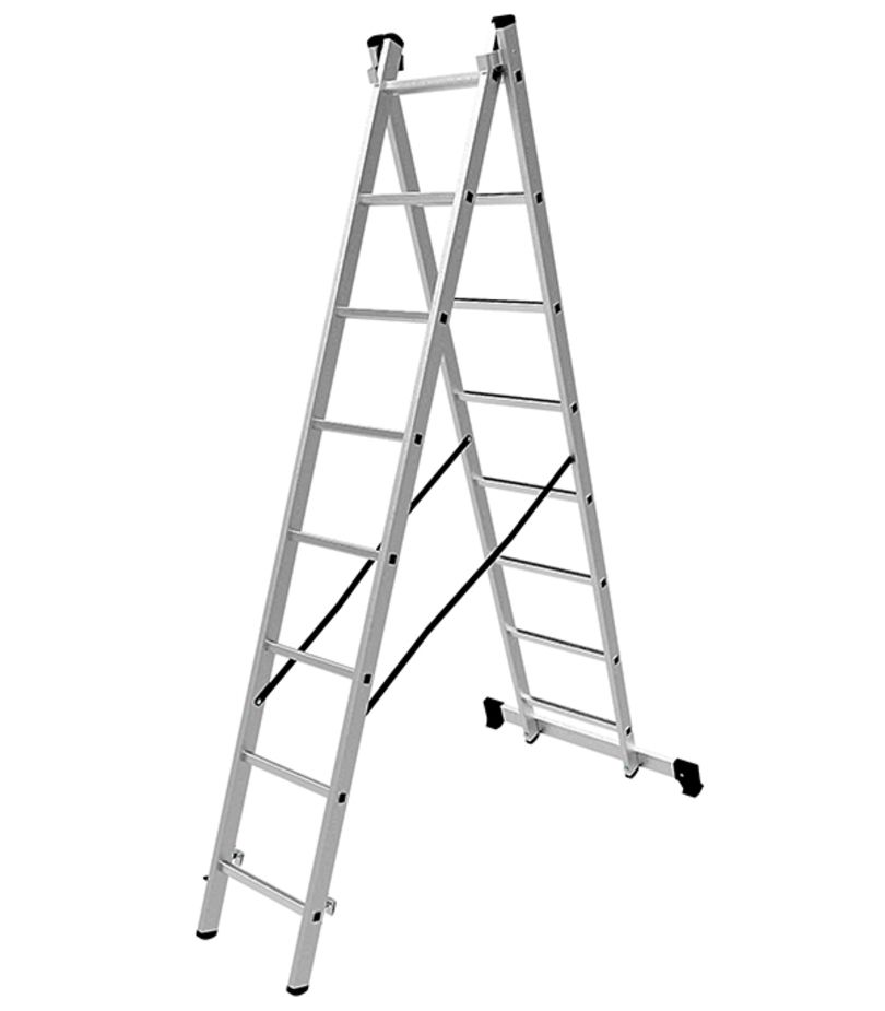 Алюминиевая двухсекционная лестница подходит для выполнения работ на высоте. При изготовлении использовался прессованный алюминиевый профиль прямоугольного сечения. Это гарантирует изделию коррозионную стойкость и прочность. Защиту от скольжения на рабочих поверхностях обеспечивают заглушки и широкая траверса.