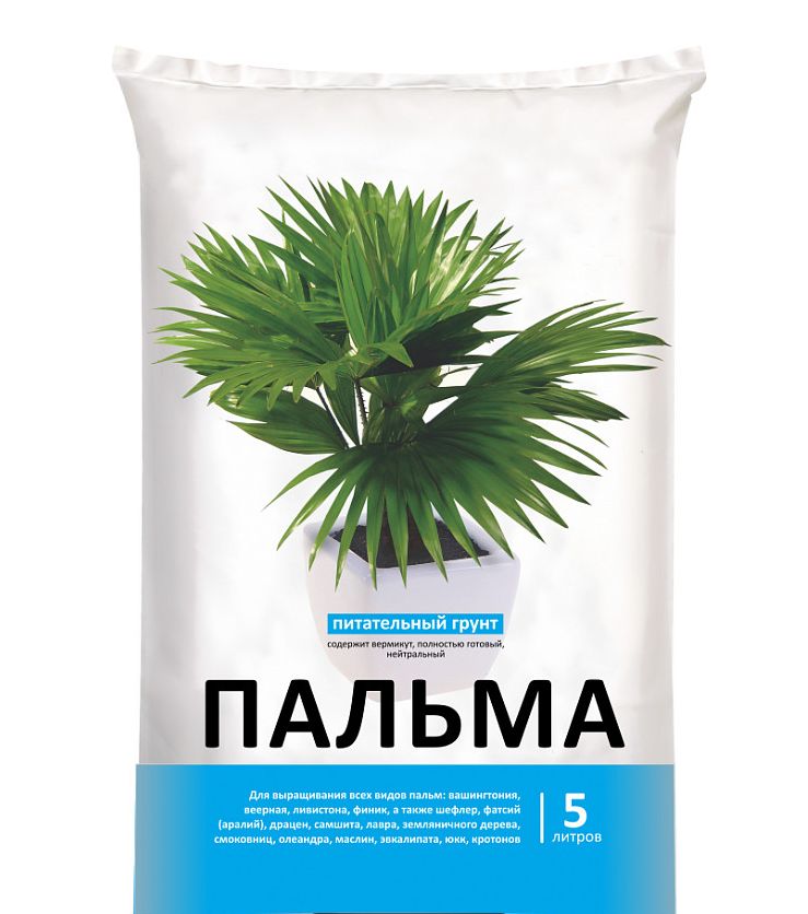 Полностью готовый нейтральный для выращивания всех видов пальм: вашингтония, веерная, ливистона, финик, а также шефлер, фатсий (аралий), драцен, самшита, лавра, земляничного дерева, смоковниц, олеандра, маслин, эвкалипата, юкк, кротонов.