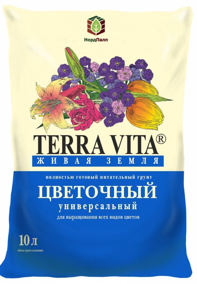 Полностью готовый питательный грунт Terra Vita (Живая земля) применяется для посадки и пересадки всех видов цветочных и декоративных культур, выращивания рассады и укоренения черенков.