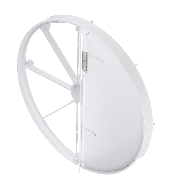 Предназначен для предотвращения изменения направления потока воздуха в системах вентиляции. Представляет собой устройство, пропускающее поток воздуха по воздуховоду в одном направлении и автоматически закрывающееся при перемене направления потока. Установка осуществляется при помощи специальных креплений, предусмотренных на выходном патрубке вентилятора. Не препятствует естественной вентиляции.